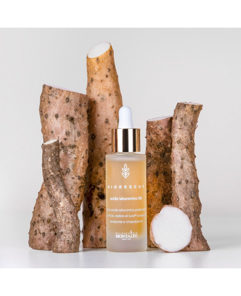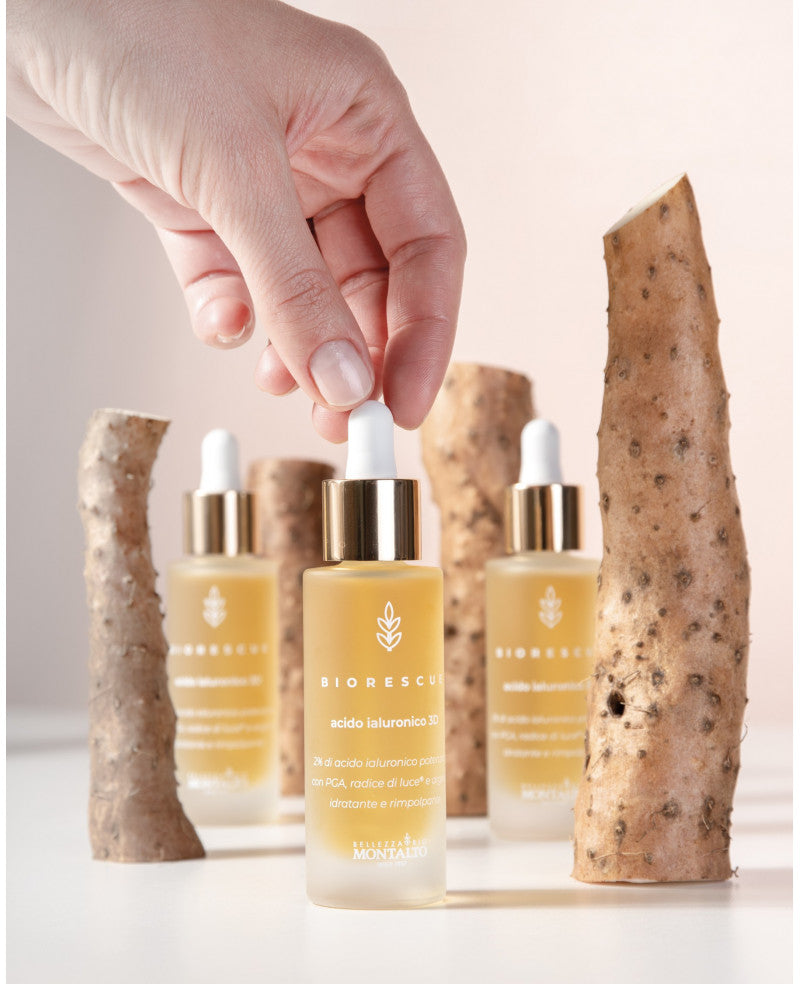 Grazie al 2% di acido ialuronico multimolecolare, questo siero idrata in profondità e previene la perdita d’acqua transepidermica. L’acido poliglutammico (PGA) amplifica l’effetto rimpolpante, mentre la Radice di Luce® stimola la produzione di collagene e vitalità cellulare. L’acqua costituzionale di rosa rubiginosa lenisce e dona un aspetto più uniforme e radioso. Con il suo effetto filler naturale, migliora tono, elasticità e luminosità della pelle. Formula certificata bio, profumo naturale e texture leggera a rapido assorbimento.