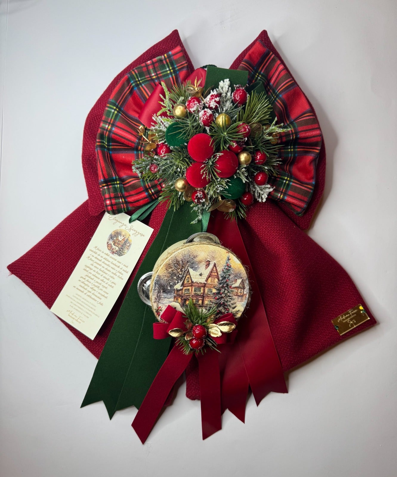 Aggiungi un tocco unico e tradizionale alle tue feste con il Fiocco Natalizio fatto a mano con Schiaccianoci, una decorazione elegante, realizzata con cura artigianale e attenzione ai dettagli.