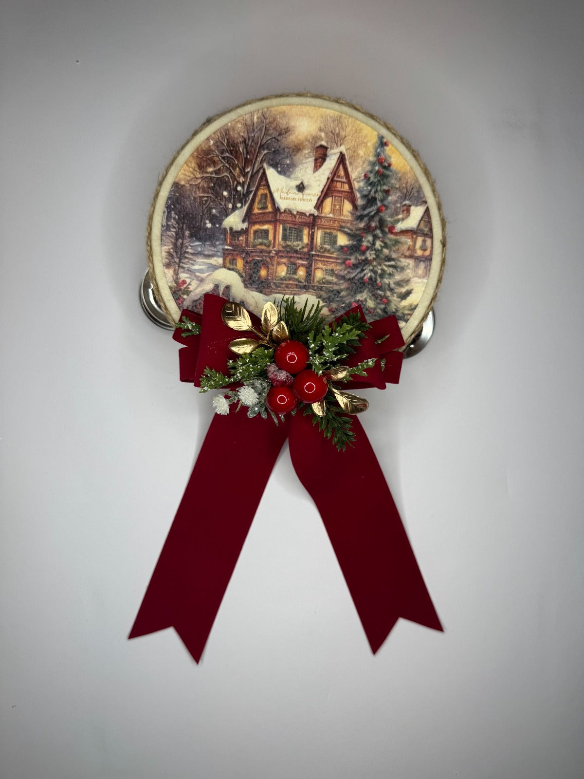 🥁✨ Tamburelli Natalizi Artigianali con Fiocco – Decorazioni Uniche per il Tuo Natale