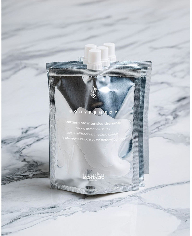 Un impacco intensivo che drena i liquidi in eccesso, stimola la microcircolazione e dona leggerezza e compattezza alla pelle.
